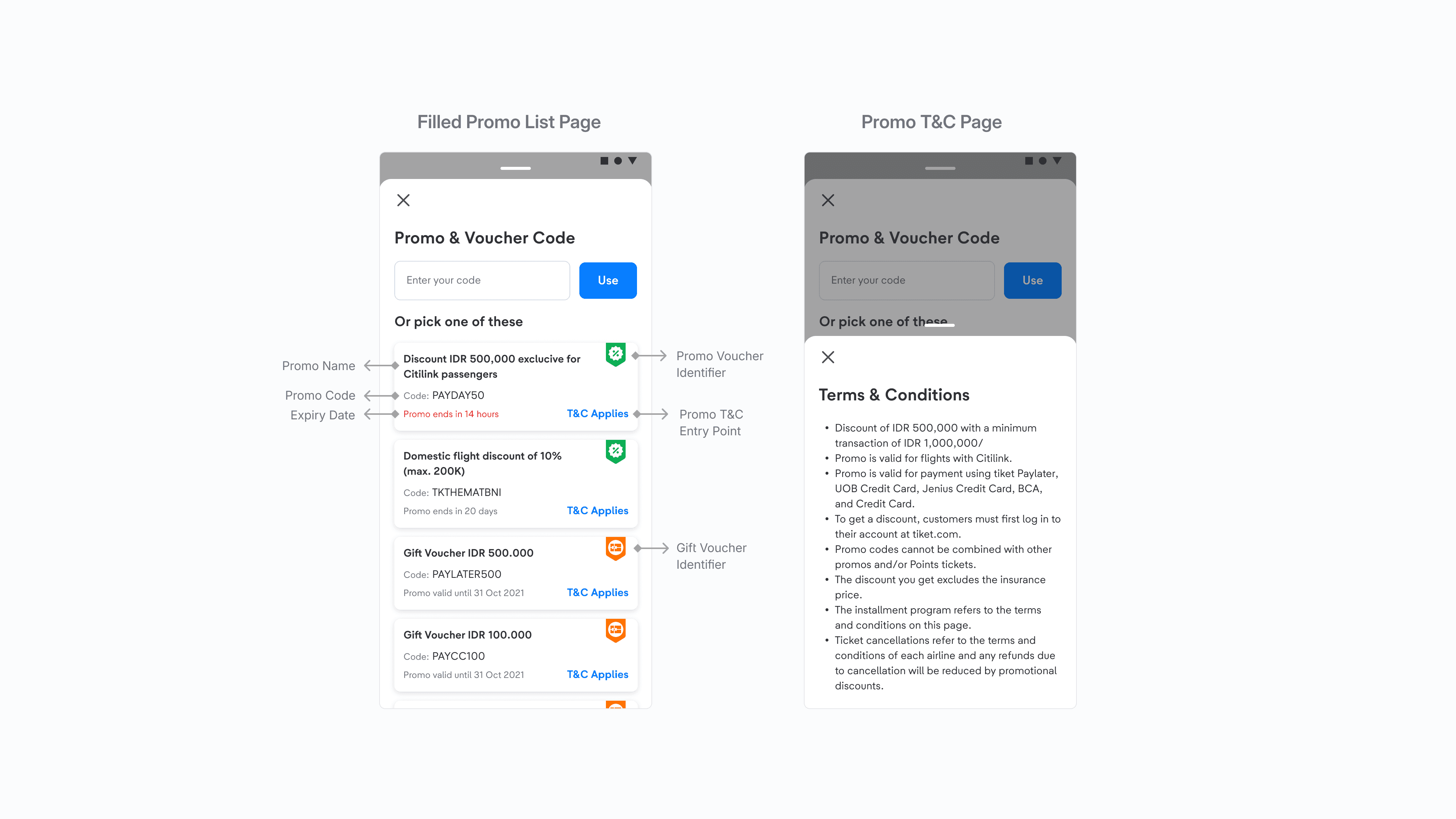 We enhanced the structure of our promo list, facilitating seamless navigation by providing two section to show eligible and ineligible promos, so that promo discovery can be done directly on the payment page, minimizing user churn. Additionally, we improved the visibility of the information displayed on the promo card to provide greater value: